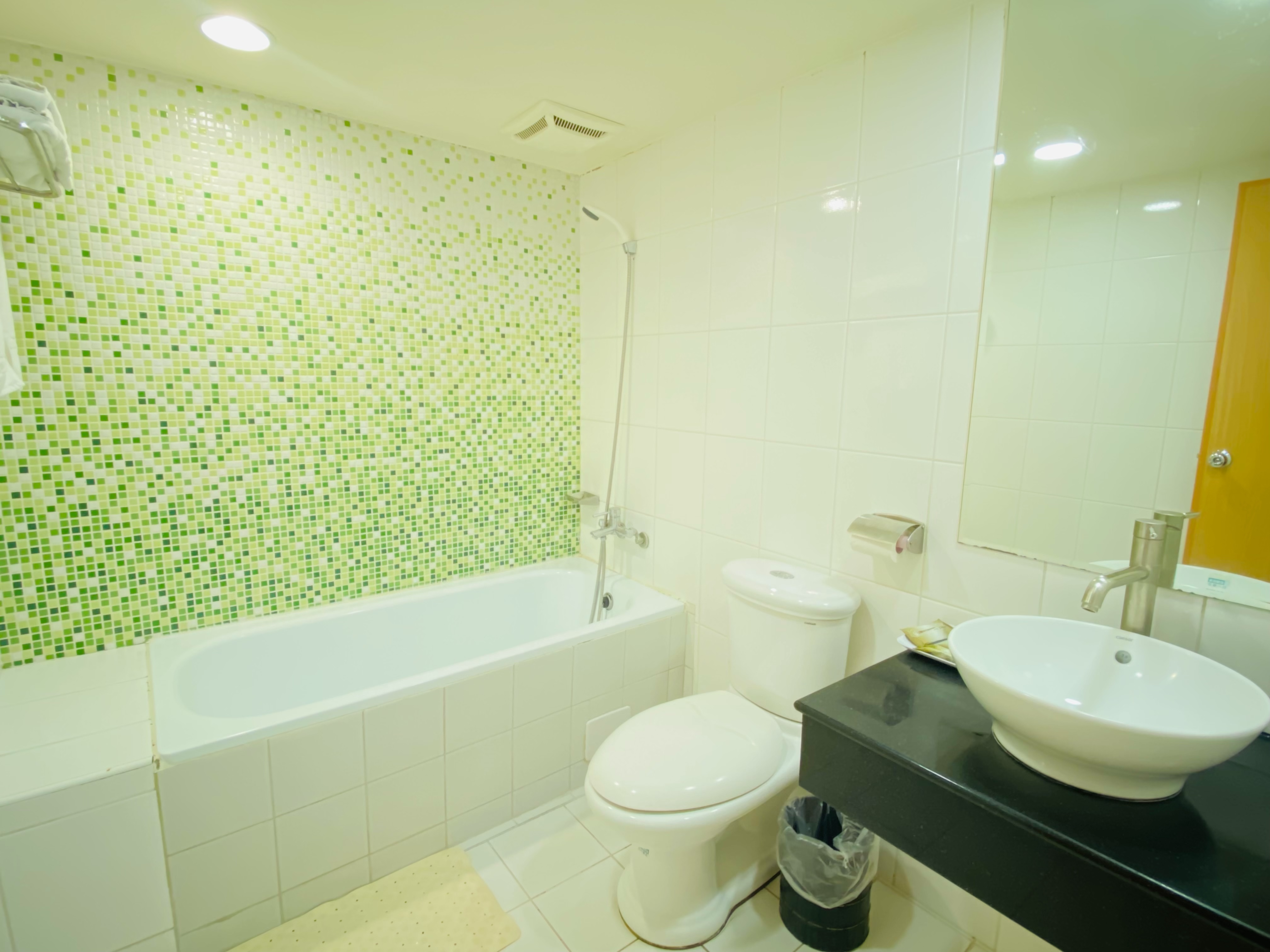 衛浴設備:(乾溼分離淋浴間)、沐浴備品、牙膏牙刷、浴帽、吹風機、大小毛巾。